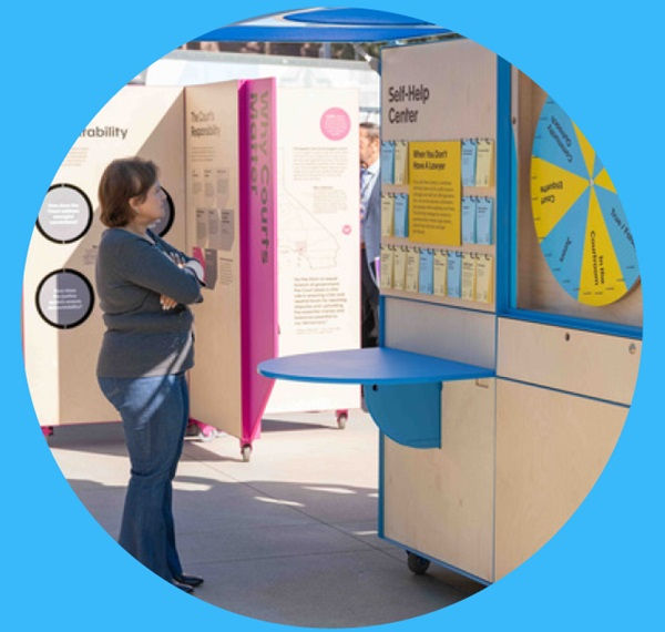 Housed in a custom-built modular trailer that expands into 2,000 square feet of interactive exhibition space, Court Commons brings court services, information, and engagement directly to the public.